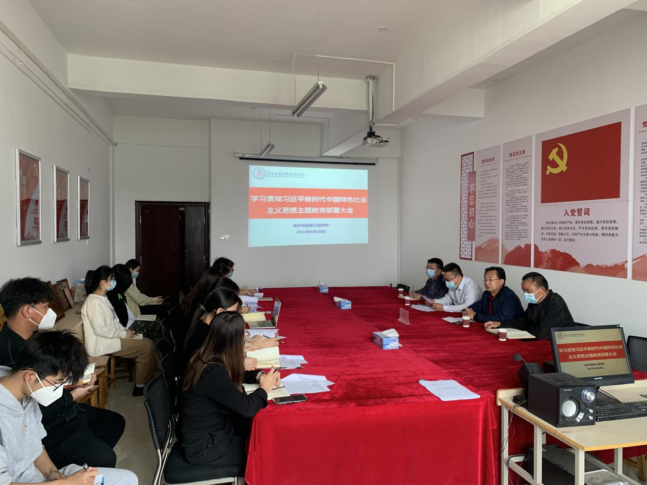 为深入学习宣传贯彻党的二十大精神,4月28日下午,我院在1407会议室召开学习贯彻习近平新时代中国特色社会主义思想主题教育动员部署会,传达学习中央学习贯彻习近平新时代中国特色社会主义思想主题教育工作会议精神和省委关于开展主题教育的有关精神,并就深入开展主题教育作出安排,会议由党总支书记龙犇同志主持,黄校助出席会议,学院领导班子、全体教师党员、学生党员代表参加会议。