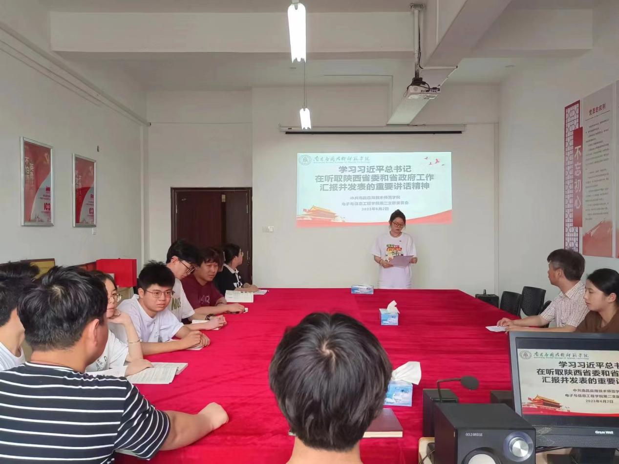 6月2日上午,电子与信息工程学院第一党支部和第二党支部分别在1407党员活动室召开会议,传达学习习近平总书记在听取陕西省委和省政府工作汇报时的重要讲话精神,研究贯彻落实措施。