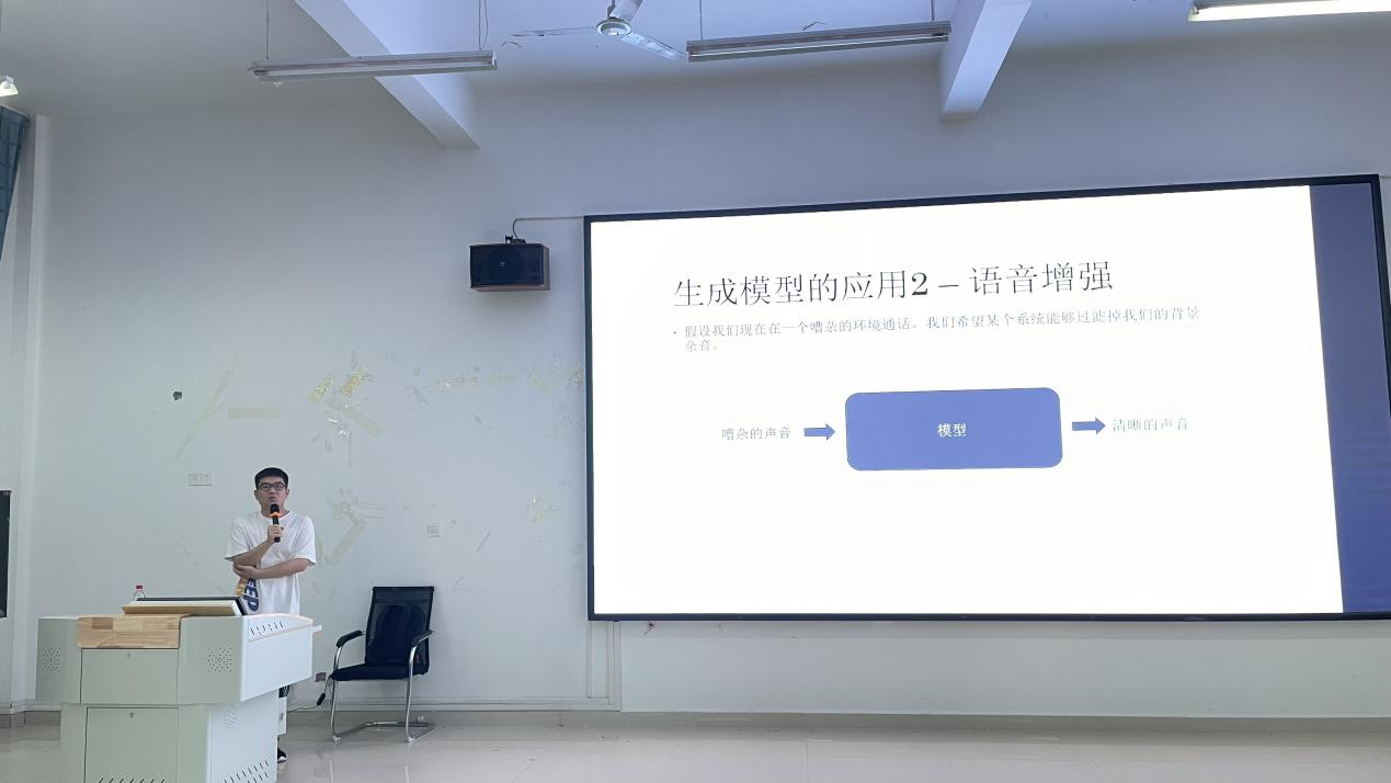 最后,程峻峰博士向听众介绍了变分自编码器(Variational AutoEncoders)、生成对抗性网络(Generative Adversarial Nets,GANs)以及去噪扩散概率模型(Denoising Diffusion Probabilistic Models,DDPMs)等主流的生成模型技术。整场讲座气氛热烈,互动频繁,使在场教师、学生受益匪浅。