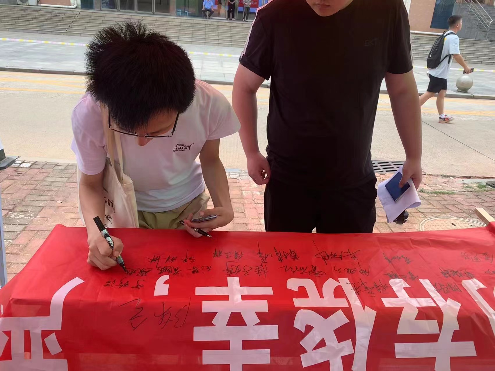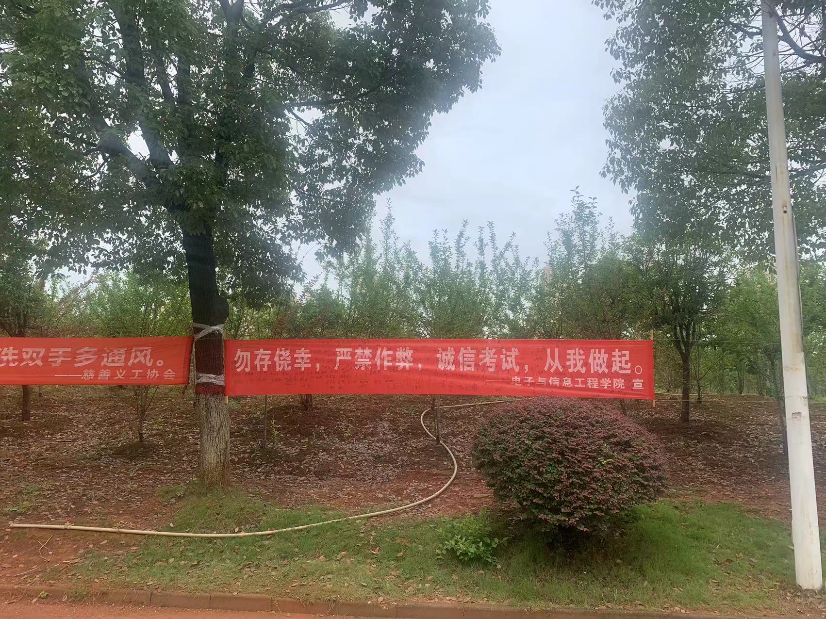 期末考试将近,为树立优良学风,加强考风考纪,营造良好的考试氛围。电子与信息工程学院于6月23日在教学楼门前停车场开展了“勿存侥幸,严禁作弊,诚信考试,从我做起”主题签名活动。