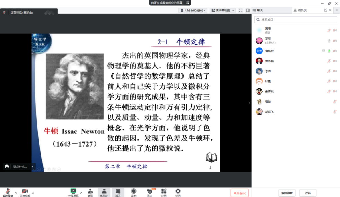 活动进行中,候伟鹏老师梳理了质点运动学的知识点,语言规范有条理,语音清晰。李倩老师通过回顾的方式引入课堂,讲解了列表的操作方法,引导了学生在练习中掌握知识。查凯金老师选取牛顿定律章节讲授,通过介绍物理学家牛顿的成就引入课堂,重点解析了牛顿第一定律。朱伟东老师介绍了进制转换规则,知识点由易到难,培养了学生善于思考的能力。邱晨老师讲授Matlab命令行窗口的使用,该教师应变能力强,善于处理课堂上突发情况。胡超飞老师讲述了TCP概述,思路清晰,环节紧凑,重难点突出。