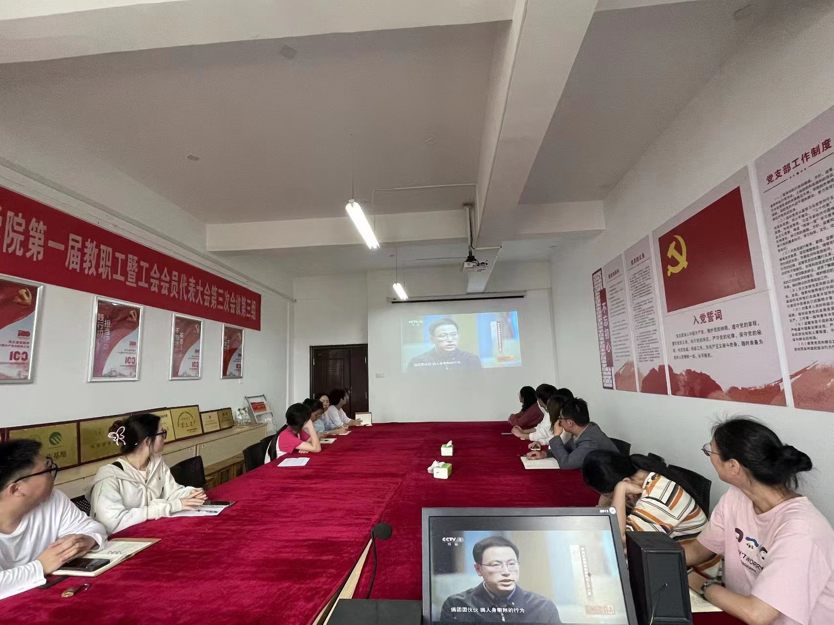 会上,由孔彩云同志领学《中国共产党纪律处分条例》,并且组织集体观看警示教育片《零容忍》第一集《不负十四亿》,以学用结合的方式高质量开展党纪学习教育,通过观看此次警示教育片,引导党员干部学纪、知纪、明纪、守纪,深刻吸取教训,引以为戒,清醒地认识到要坚定我们的理想信念,筑牢对党绝对忠诚根基。
