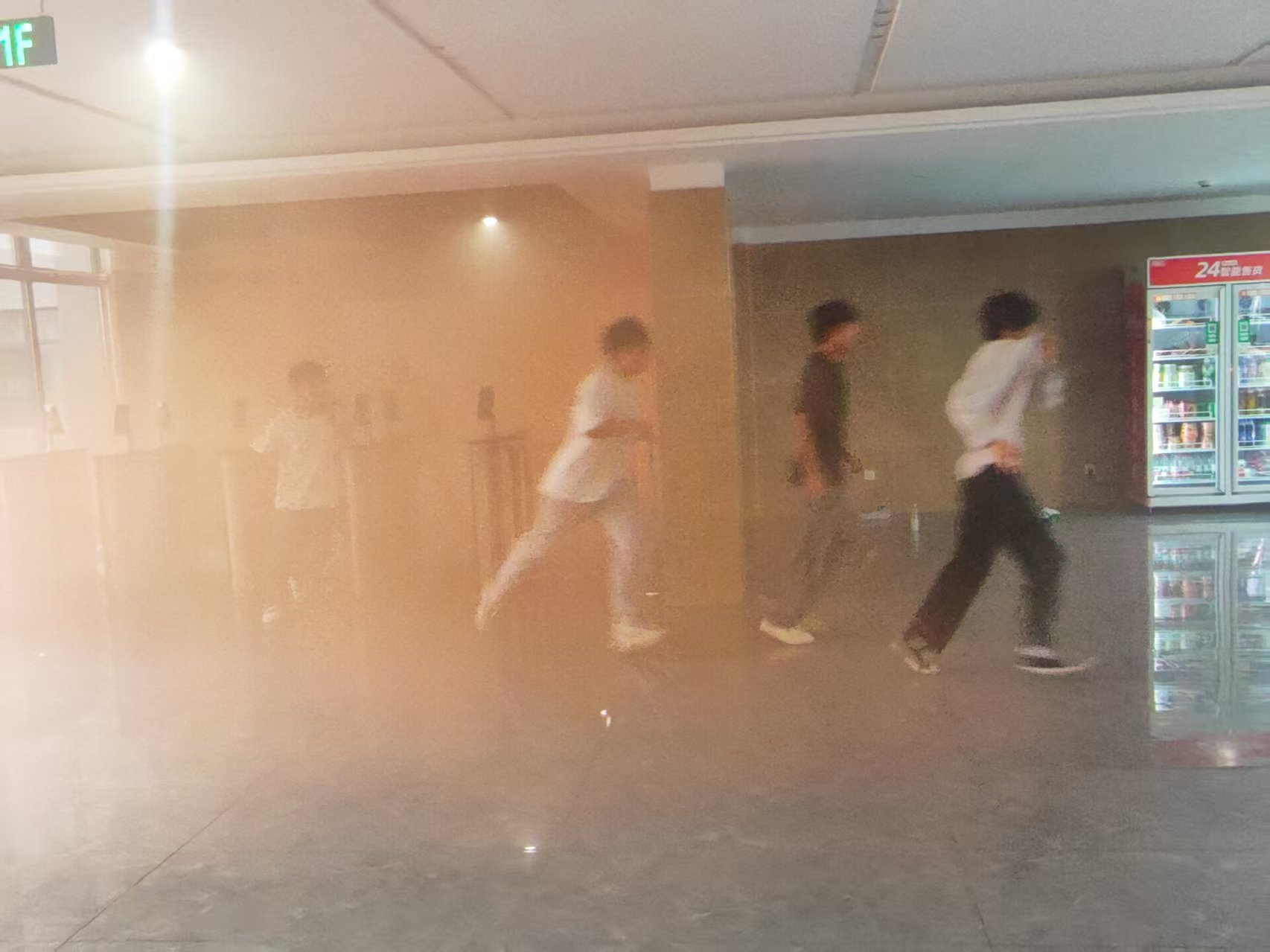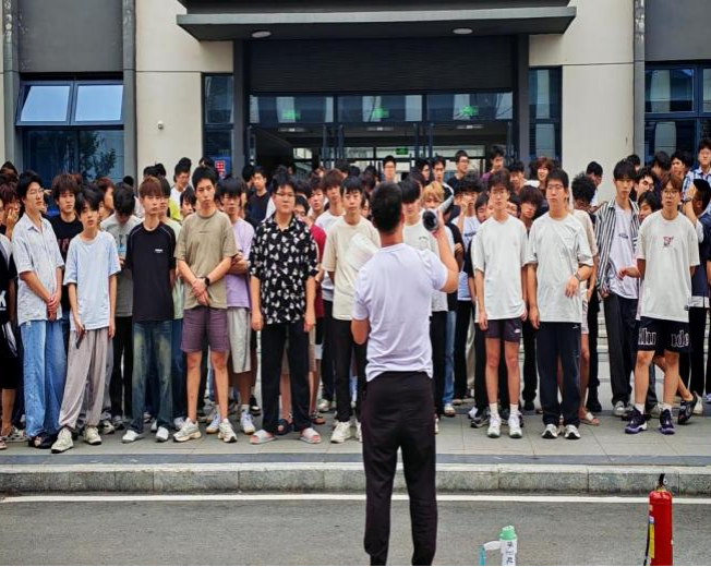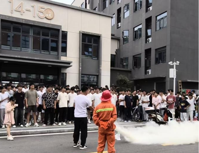 演练警报拉响前,学院综治联络员、新生辅导员易佳欣老师联合保卫处黄健德老师,提前组织师生明确疏散路线、熟悉应急避难点位;活动过程中保卫处于演练时拉响警报,开展疏散演练,消防设施保障组点燃烟雾弹,模拟火灾浓烟环境;全体学生捂住口鼻,沿墙壁快速向最近安全出口撤离。