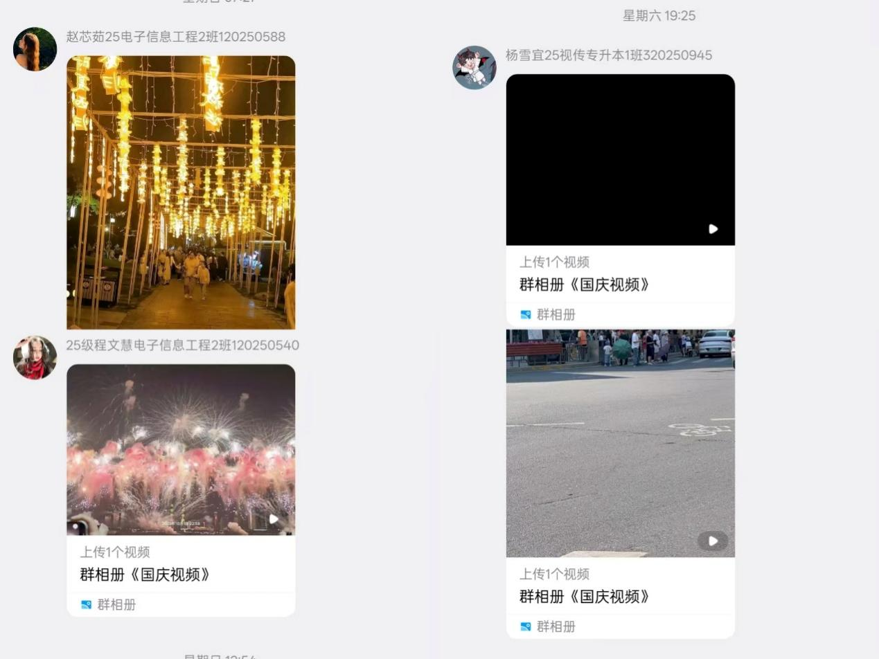 活动伊始,为保障“云端庆华诞,共叙家国情”活动的顺利开展,准备工作从QQ建群、名单统计、技术保障、作品收集等多方面精心规划。在工作人员的引导下,参与活动的同学们踊跃分享个人作品,积极讨论活动内容,同时在活动持续期间内工作人员及时地为各位同学解答相关疑惑。