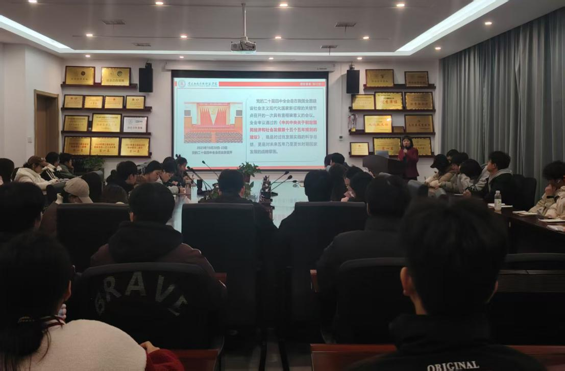 为深入学习贯彻党的二十届四中全会精神,12月18日,马克思主义学院王敬平教授在沁苑5实506党员活动室为我院师生做学习贯彻党的二十届四中全会精神专题宣讲,全体辅导员、入党积极分子参加宣讲报告学习。