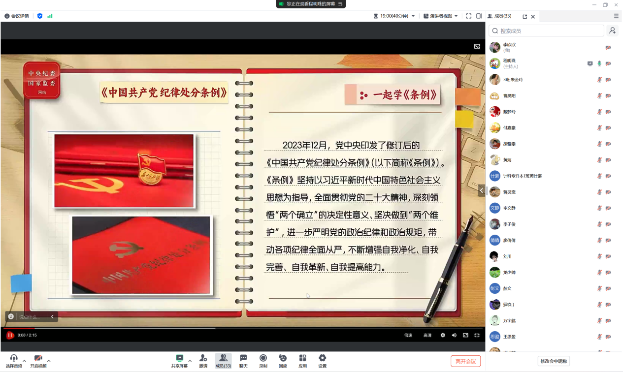 为深入学习贯彻党的二十届四中全会精神,强化党员思想理论武装与纪律作风建设,引导全体党员统一思想、凝聚共识,以过硬作风推动学院事业高质量发展。电子与信息工程学院第二党支部于2026年2月13日线上组织开展“春潮涌动启新篇,实干担当赴新程”二月主题党日活动。