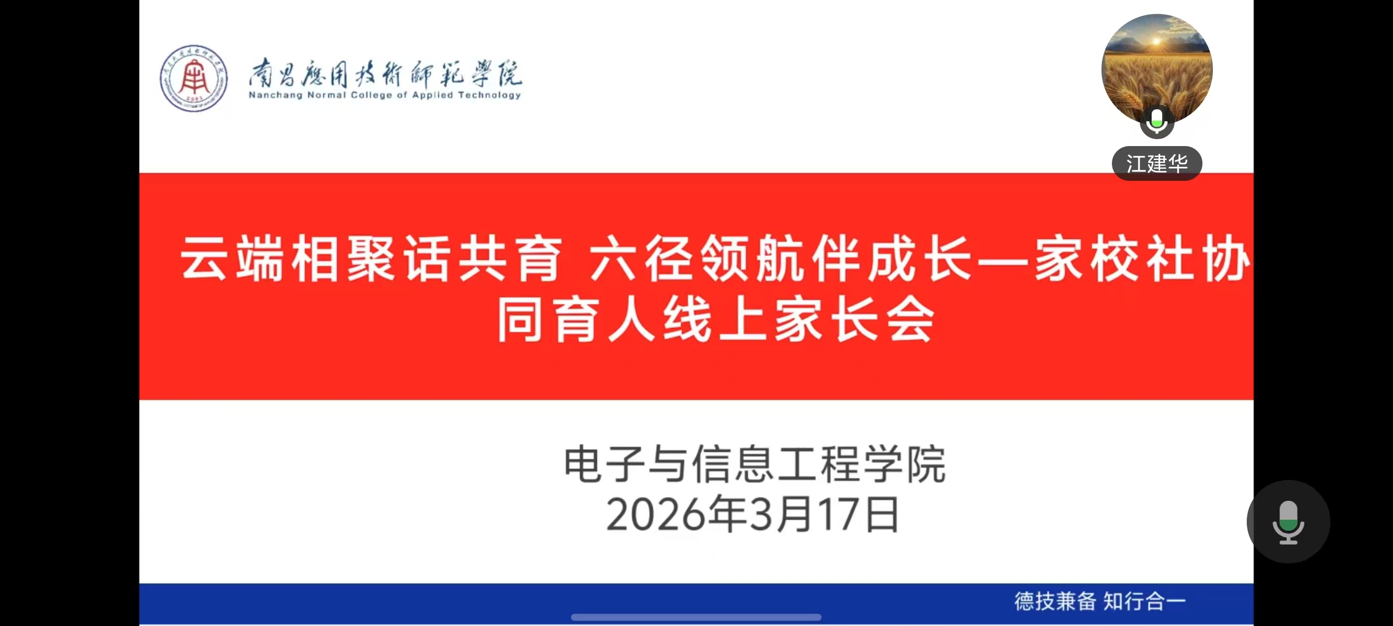 此次线上家长会,是电子与信息工程学院深化家校社协同育人机制、落实“三全育人”理念的生动实践,也是创新沟通载体、拉近家校距离的具体行动。下一步,学院将持续优化线上线下协同沟通模式,进一步整合家校社三方资源,细化育人举措、提升育人质量,全力助力每一位学子在适合自己的赛道上绽放青春光彩,培养更多德智体美劳全面发展的社会主义建设者和接班人。