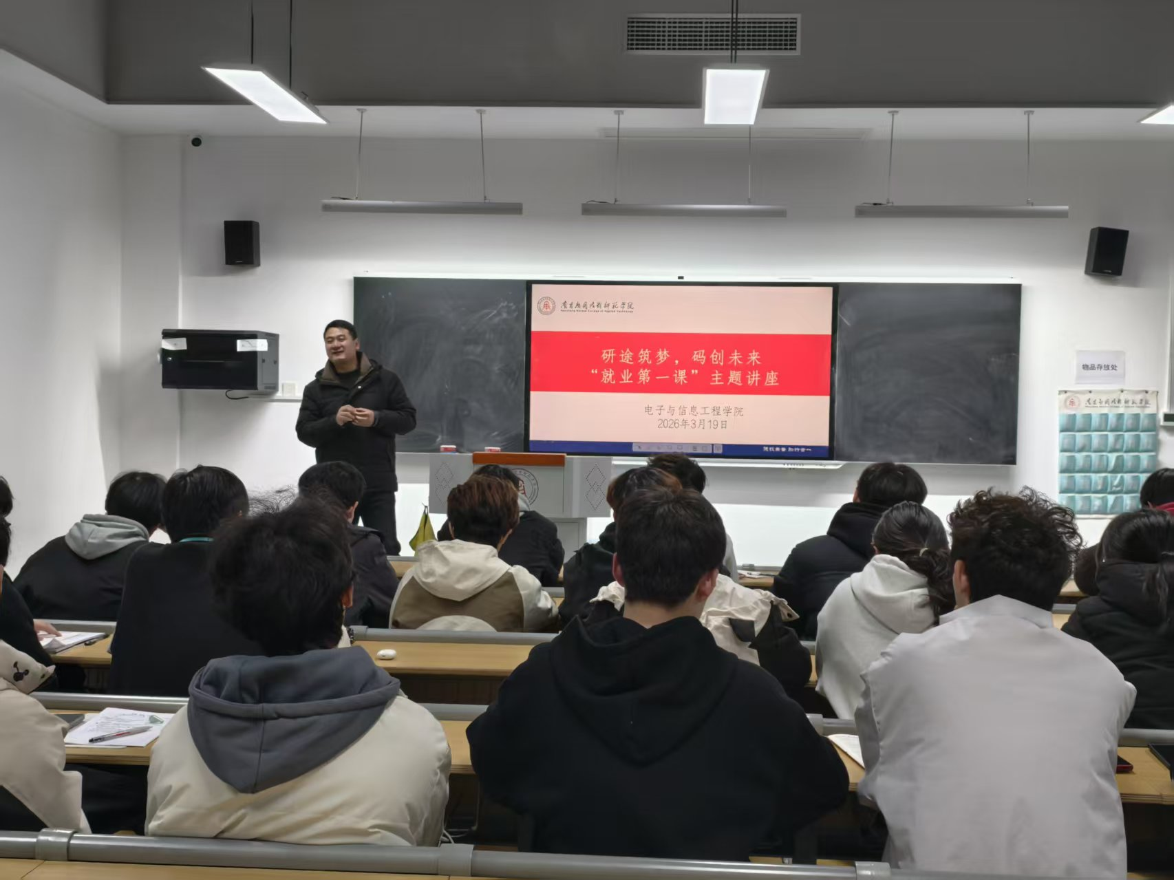 为切实提升学生职业规划意识与就业竞争力,引导学子精准把握数字时代行业发展机遇,科学规划学业与职业发展道路,3月19日晚,我院在沁苑二教B座教室举办了以“研途筑梦,码创未来”为主题的就业第一课专题讲座,本次讲座由学院党总支书记江建华担任主讲,全体辅导员及2025级软件工程专业学生参加。