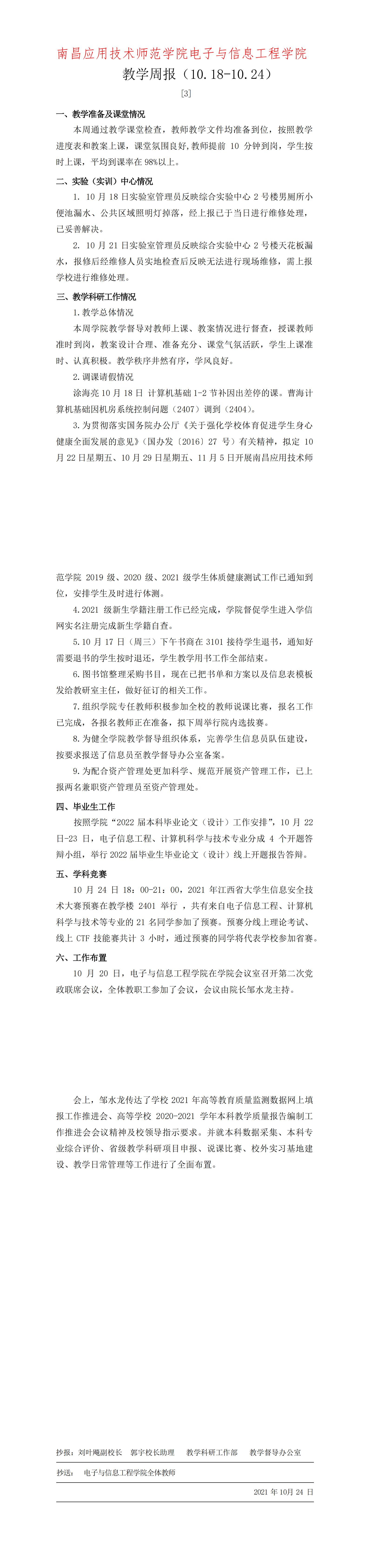 首页栏目 学院新闻 学院公告 学生工作 您现在的位置是:首页 > 首页栏目 > 学院公告 学院教学周报【3】号 管理员2021-10-24649 上一篇 学院教学周报【2】号 下一篇 电子与信息工程学院2025-2026学年普通高等学校国家助学金受助学生名单公示