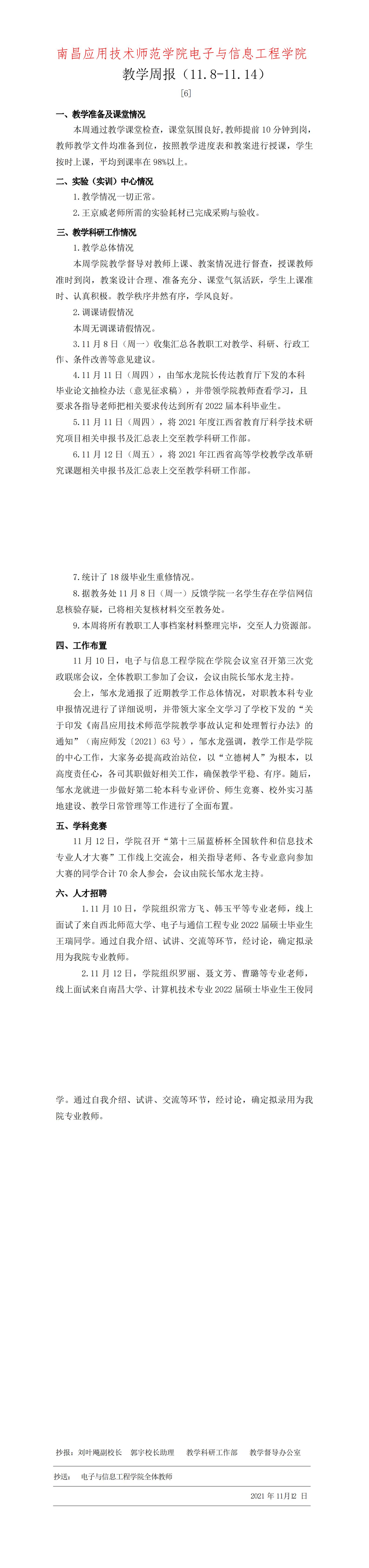 首页栏目 学院新闻 学院公告 学生工作 您现在的位置是:首页 > 首页栏目 > 学院公告 学院教学周报【6】号 管理员2021-11-14701 上一篇 电子与信息工程学院教学周报【5】号 下一篇 电子与信息工程学院2025-2026学年普通高等学校国家助学金受助学生名单公示