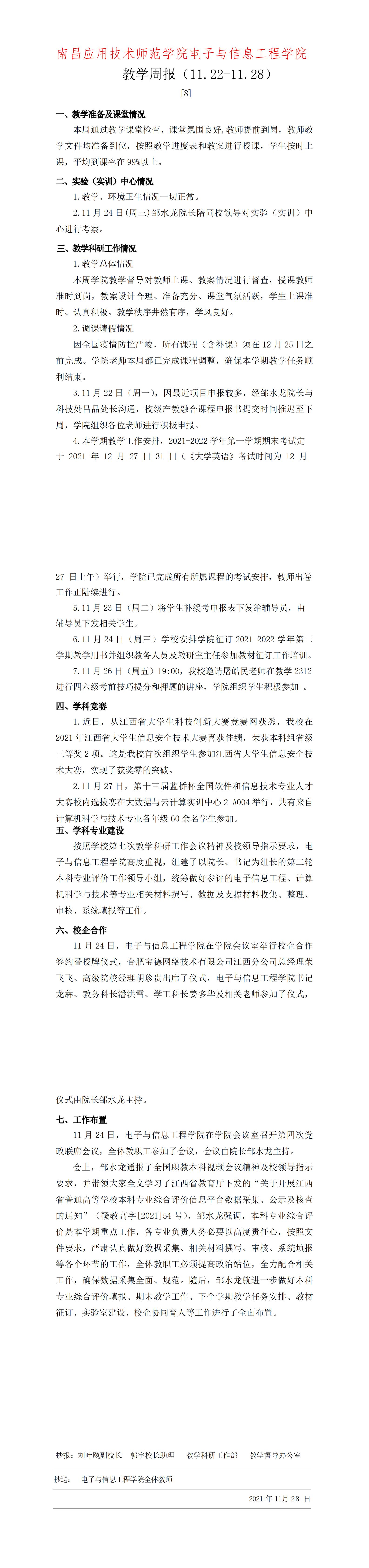 首页栏目 学院新闻 学院公告 学生工作 您现在的位置是:首页 > 首页栏目 > 学院公告 学院教学周报【8】号 管理员2021-11-28752 上一篇 关于做好2021-2022学年寒假期间各项工作的通知 下一篇 电子与信息工程学院2025-2026学年普通高等学校国家助学金受助学生名单公示