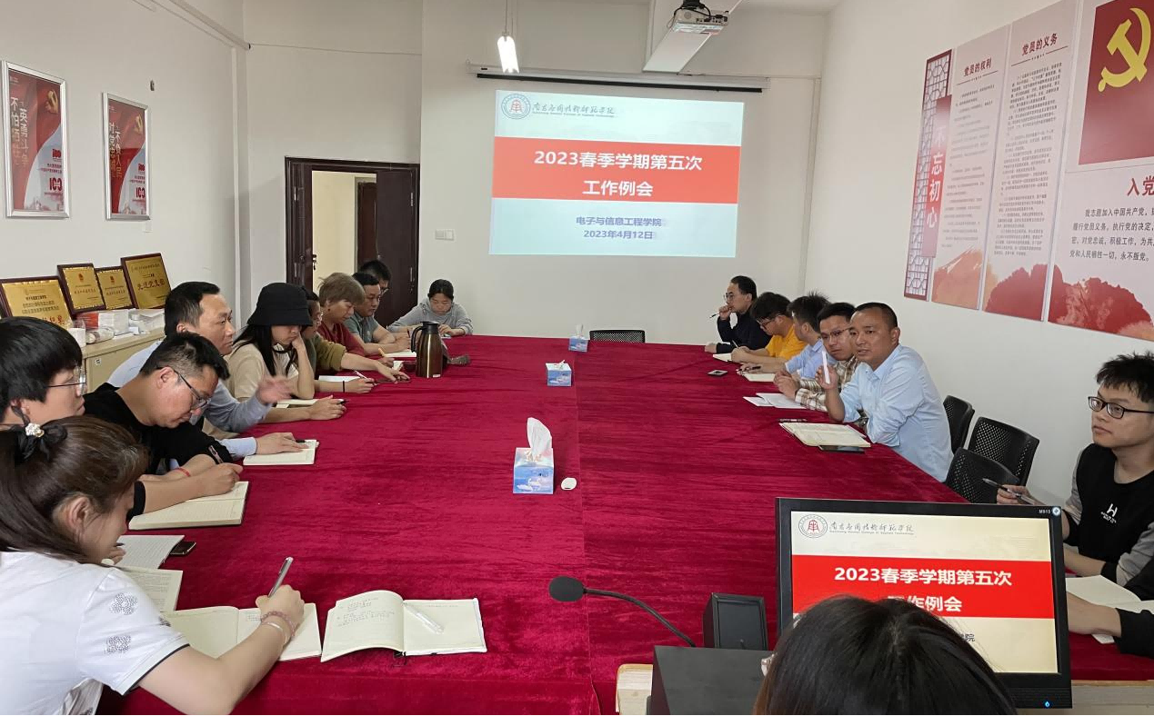 4月13日,学院在会议室1407召开了2023春季学期第五次工作例会,全体教职工参加了会议,会议由院长邹水龙主持。